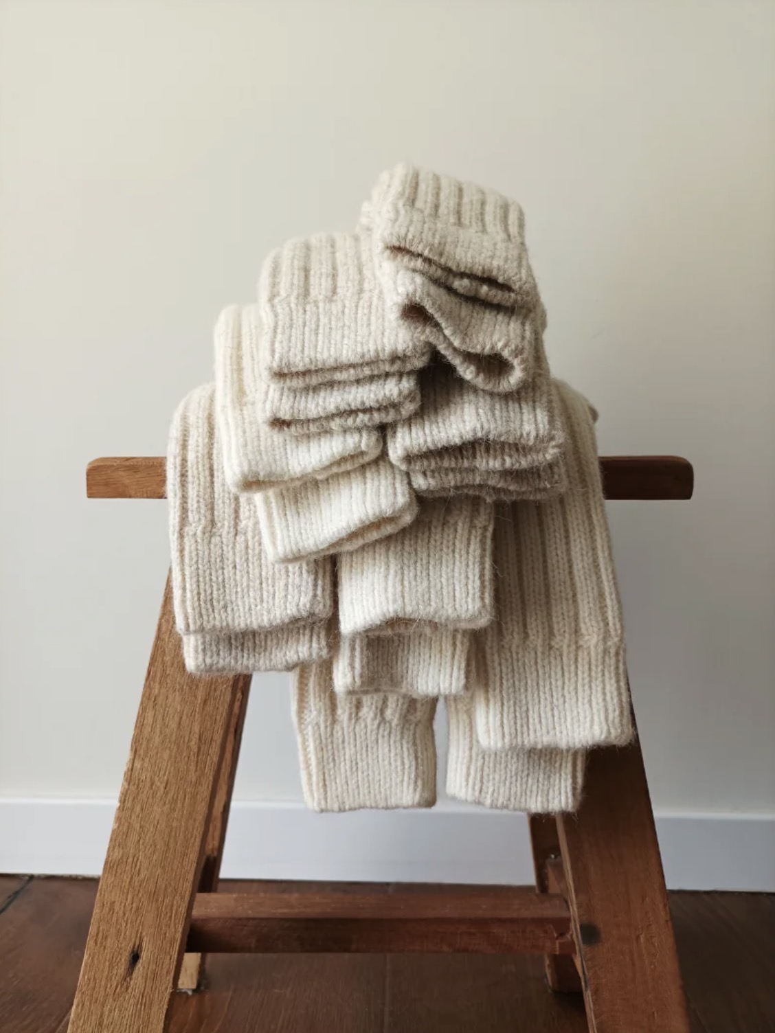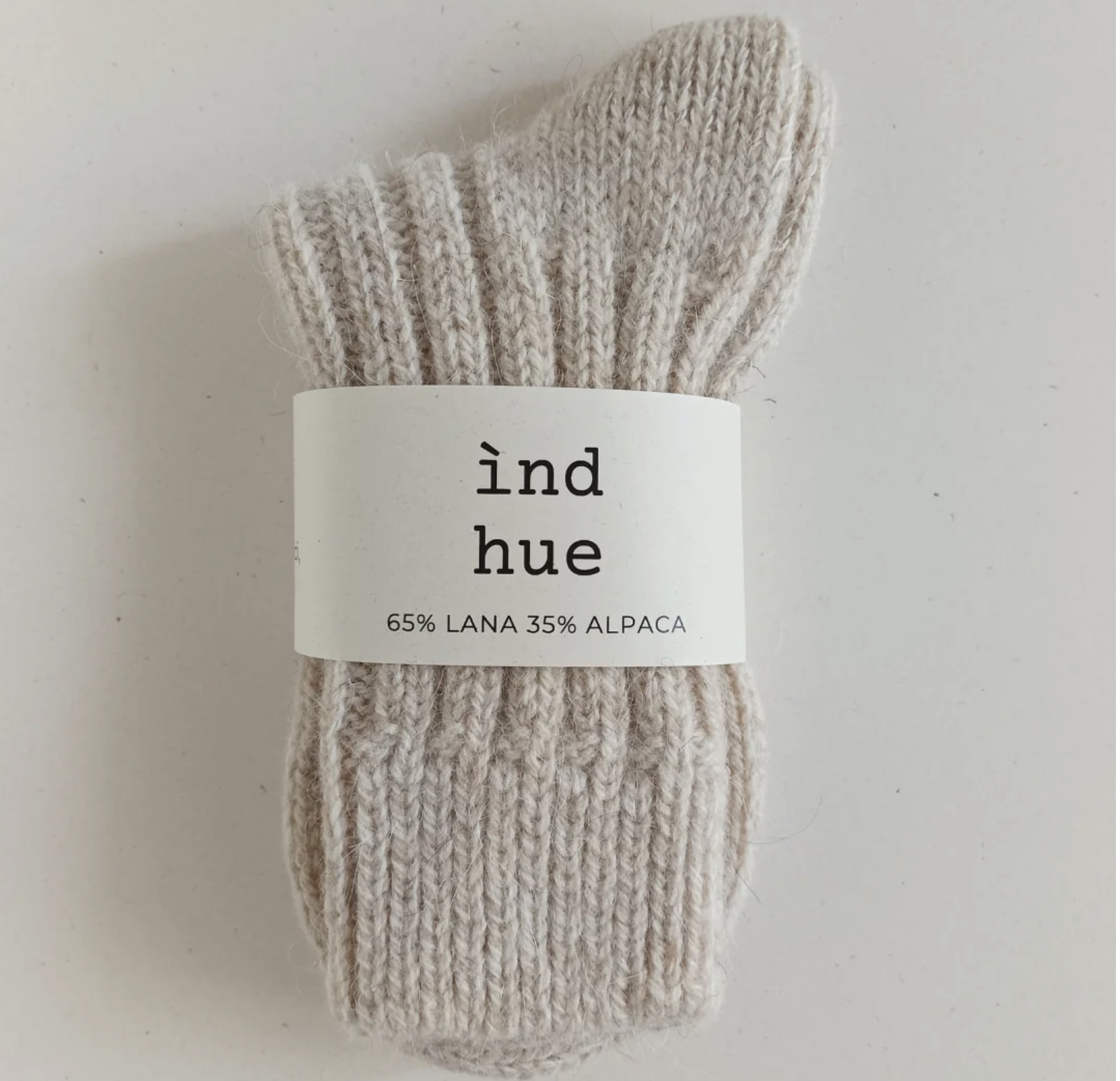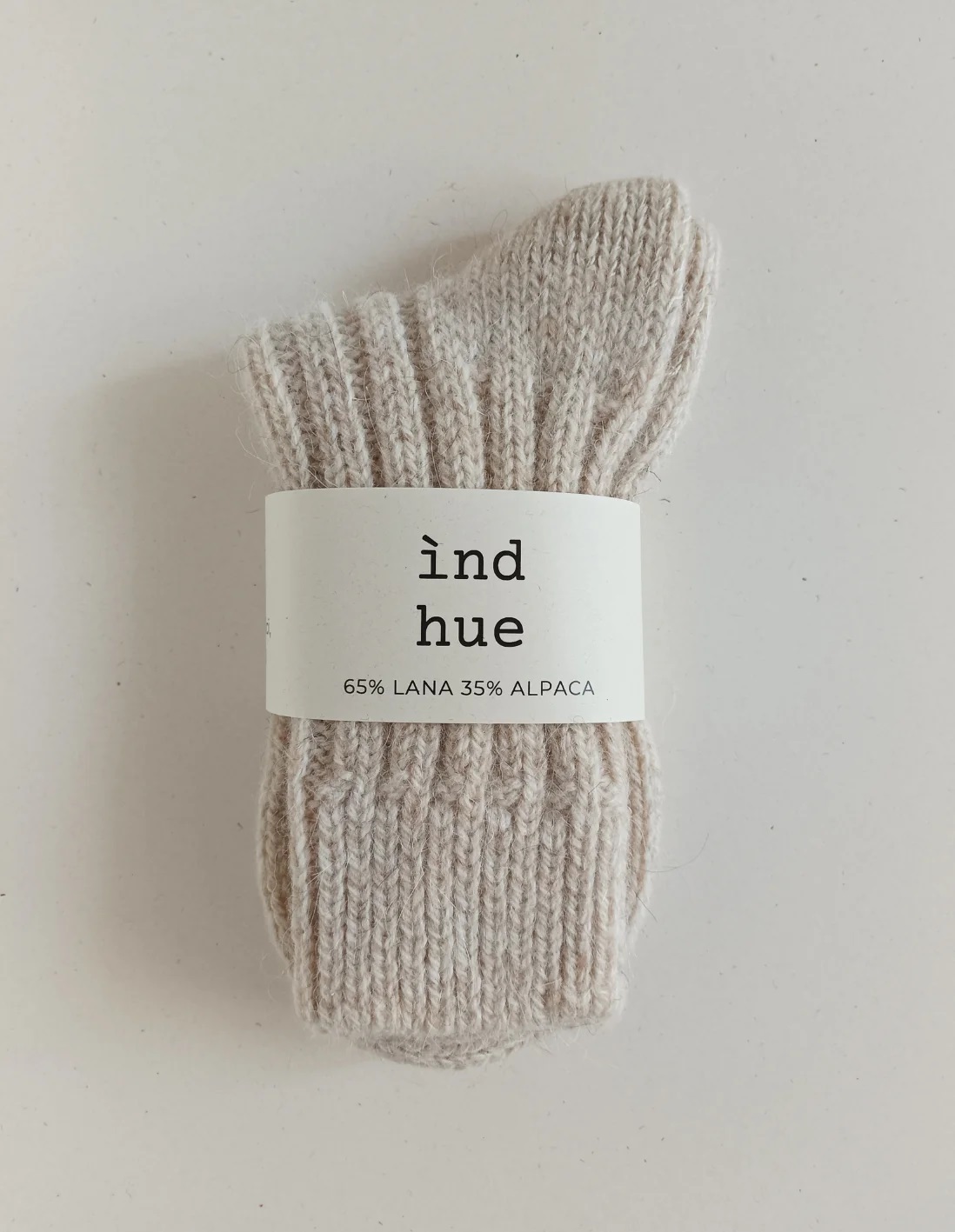 Skarpety z 65% wełny i 35% alpaki, w naturalnym kolorze runa. W 100% naturalne włókna, bez szkodliwych substancji chemicznych.